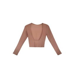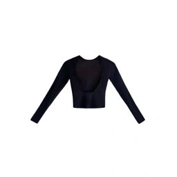 A cropped long-sleeve t-shirt with a twist, the Rei Top has a backless design. Comes in Nude and Black.
