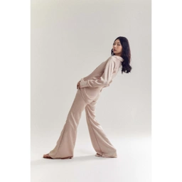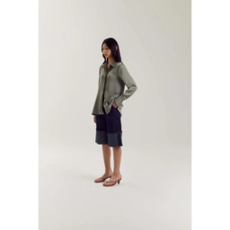 A satin silk shirt with hidden openings, relax fit, and a mid-back slit detail.