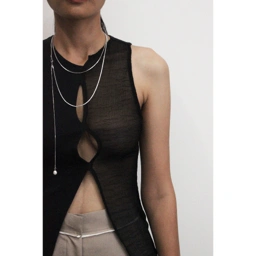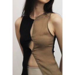 A two-material top made from deadstock cotton rib and mesh; the Orla Top evokes sensuality. Comes in two shades of Tan and Black.