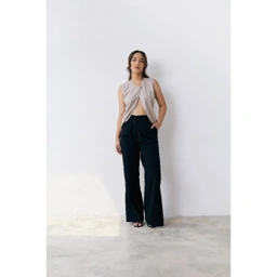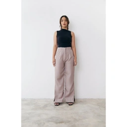 a classic straight-cut tailored pants with side slit.
