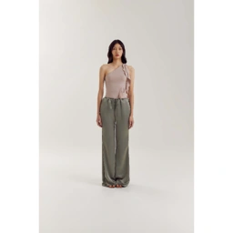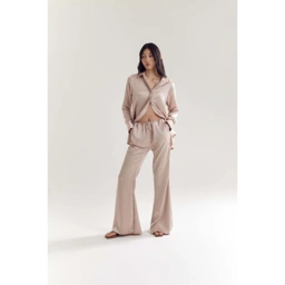 A laid-back satin silk flared pants with drawstring waistline adjustable to your comfort.