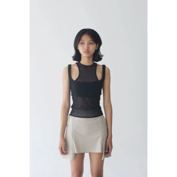Two-piece tank top sheer dan bralette rib katun. Dapat dipakai bersama atau terpisah untuk fleksibilitas maksimal.