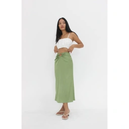 Rayakan harimu dengan memakai Rok Lui kami. Rok midi ini hadir dalam detail ruched depan dengan tali panjang yang bisa bebas di styling sesuka hati.